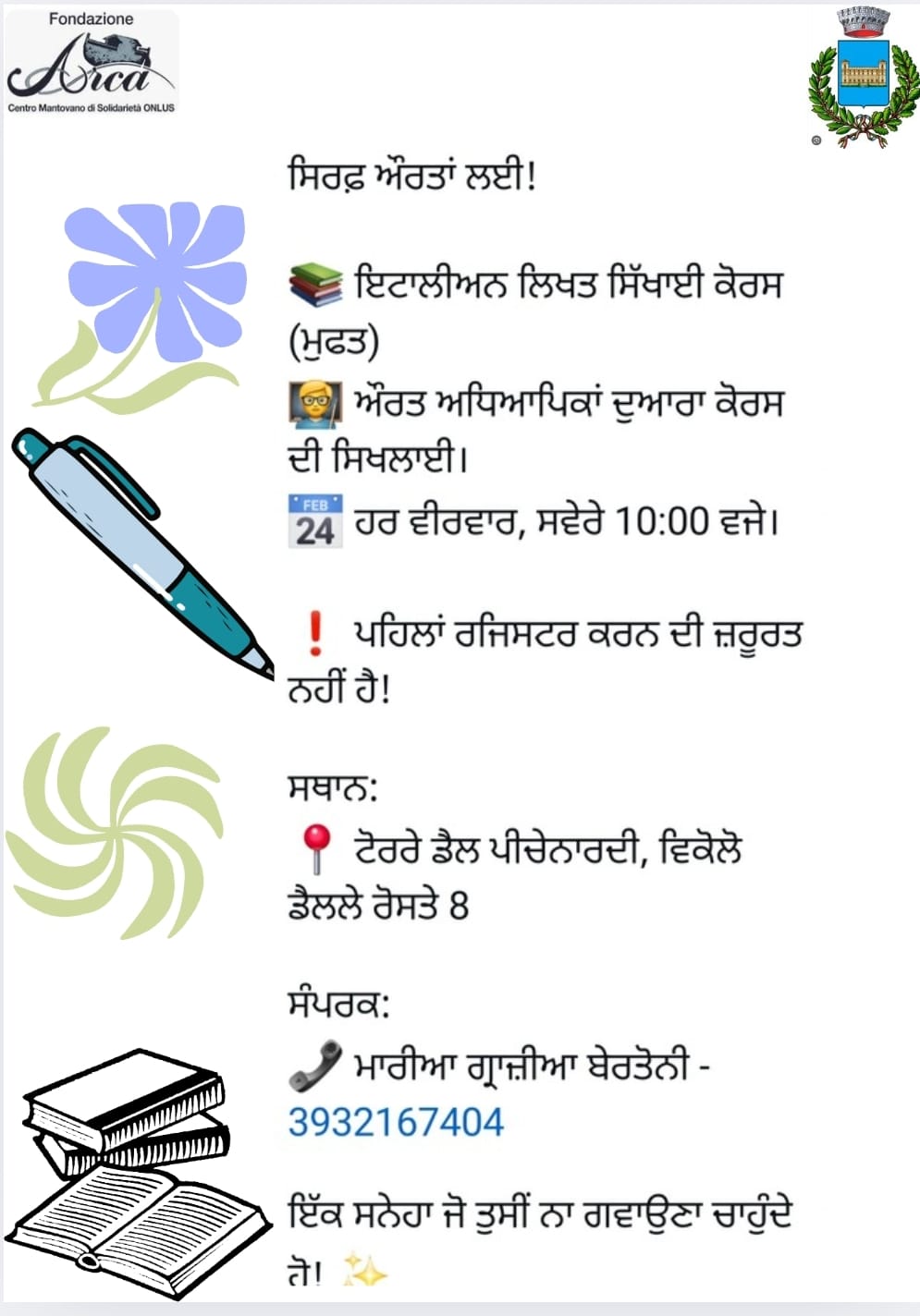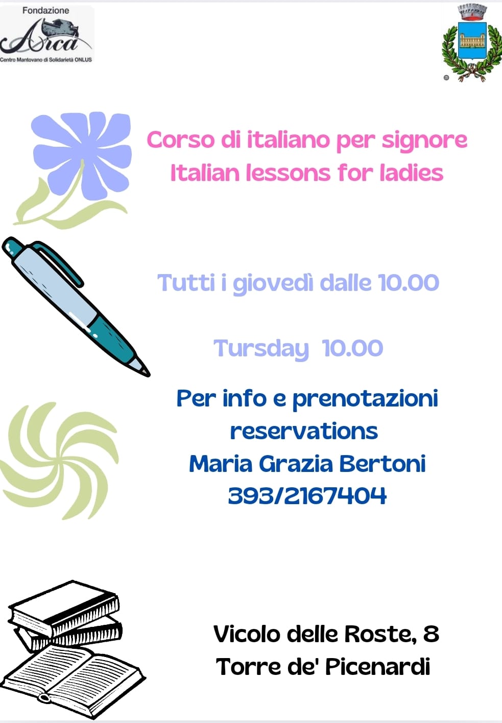 Descrizione Corso di italiano per signoretutti i giovedì dalle 10:00Vicolo delle Roste , 8 - Torre de' Picenardi